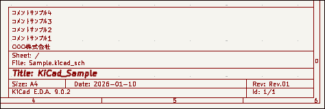 例えば次のようにタイトルブロックを入力した場合、図面の表題欄には下図になります。コメント5 ~ コメント9の入力欄に入力した内容は非表示となります。