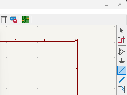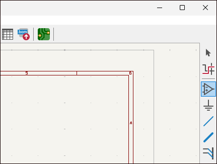画面右上はシンボル、電源シンボル、ワイヤー、バス、ネットラベルなどメインキャンパスに配置するツールが並べられています。