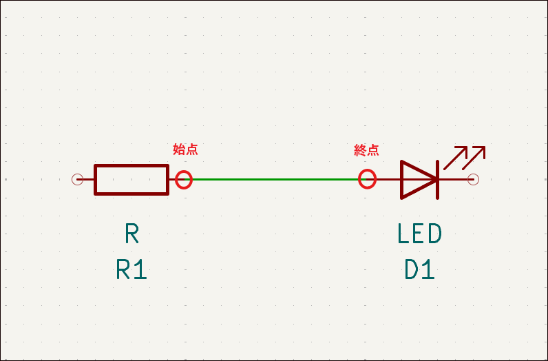 ワイヤーを追加したいシンボルの始点と終点をクリックすると線を引くことができます。