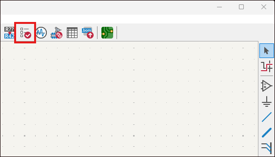 ツールバー(上側)の「ERC」ボタンを選択します。