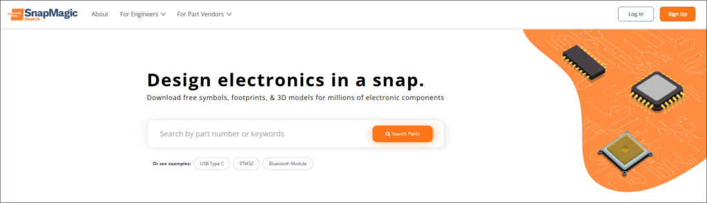 SnapMagicは、半導体メーカーや電子部品メーカーが提供する公式データをベースに、回路図シンボルやフットプリント、3Dモデルを生成・配布しているオンラインサービスです。
