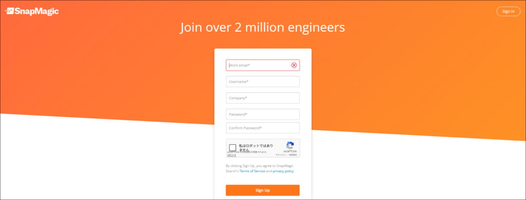 SnapMagic を利用するにはアカウント作成が必要です。次の手順でアカウントを作成しましょう。