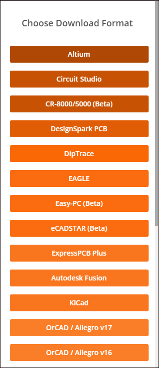ダウンロード可能な EDA ツールの名称が一覧で表示されるため、その中から KiCad を選択します。