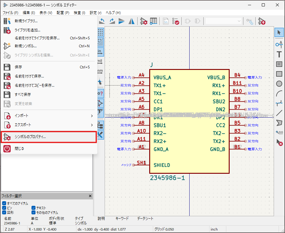 シンボルプロパティを開く