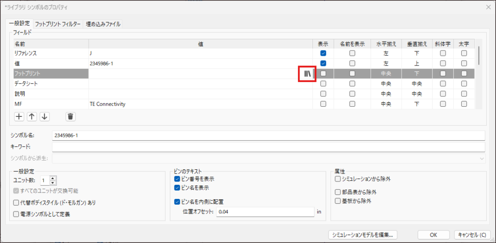 フットプリントを基板設計で使用するためには、シンボルと関連付ける必要があります。