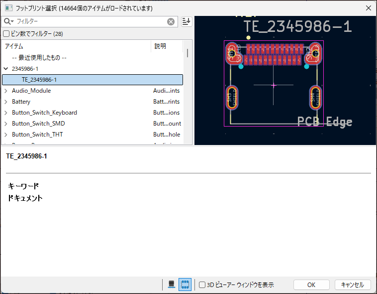 登録後は、フットプリントブラウザから部品名で検索し、SnapMagic から取得したフットプリントが表示されることを確認しましょう。